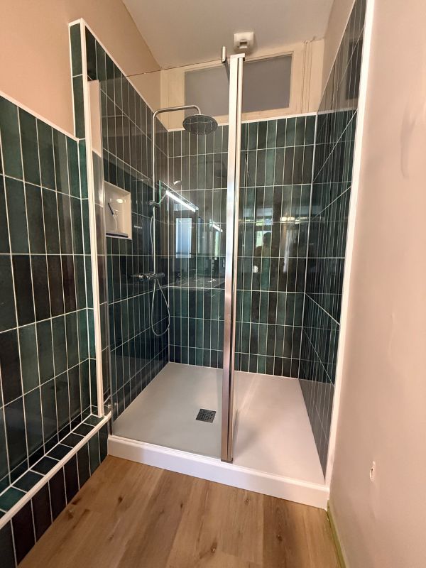 On est passé d’une vieille salle d’eau sombre, datée et peu agréable…à une salle de bain totalement transformée, moderne, chaleureuse et haut de gamme !