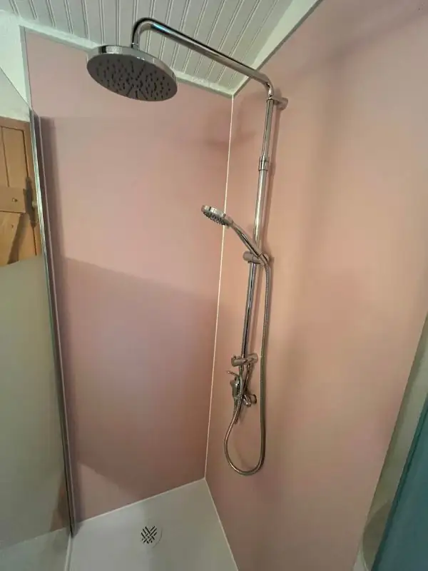 Sur la commune de Bazas, reprise d’une douche existante en vue de la création d’une nouvelle douche avec la pose d’un receveur sur mesure extra plat blanc effet ardoise anti dérapant PN24, reprise de l’étanchéité des murs par la pose de panneaux muraux slim Rose, une paroi fixe ainsi qu’une paroi pliante et son mitigeur mécanique et son ensemble de douche déporté.